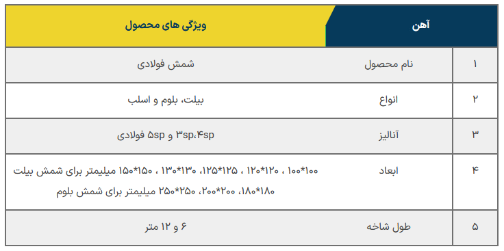 اما در کل متداول ترین انواع شمش فولادی به شرح زیر می باشد: